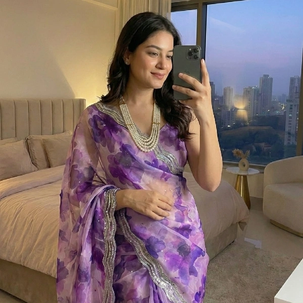 *New Super Trending Embroidery Sequence work ready to wear saree with Embroidery Blouse*