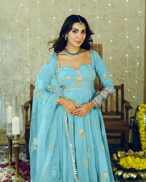 *👉❤️PRESERNTING NEW FANCY EMBROIDERY 5mm SEQUENCE WORK ANARKALI GOWN-PENT WITH DUPATTA 👍*
