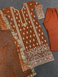β₯οΈ *Launching New Super Hit Designe Collection Beautiful Embroidery And Sequins Work Long Kurti - Bottom With Dupatta* ππ»