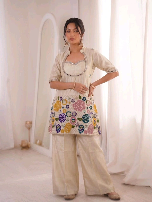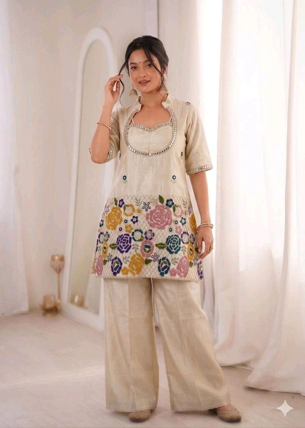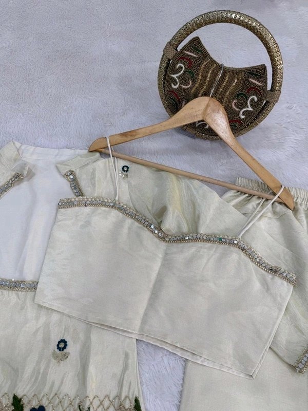 🌷Ethnic Women Co-Ord Collection🌷 Premium Ivory Bustier with Co-Ord – Shimmer Set 💫