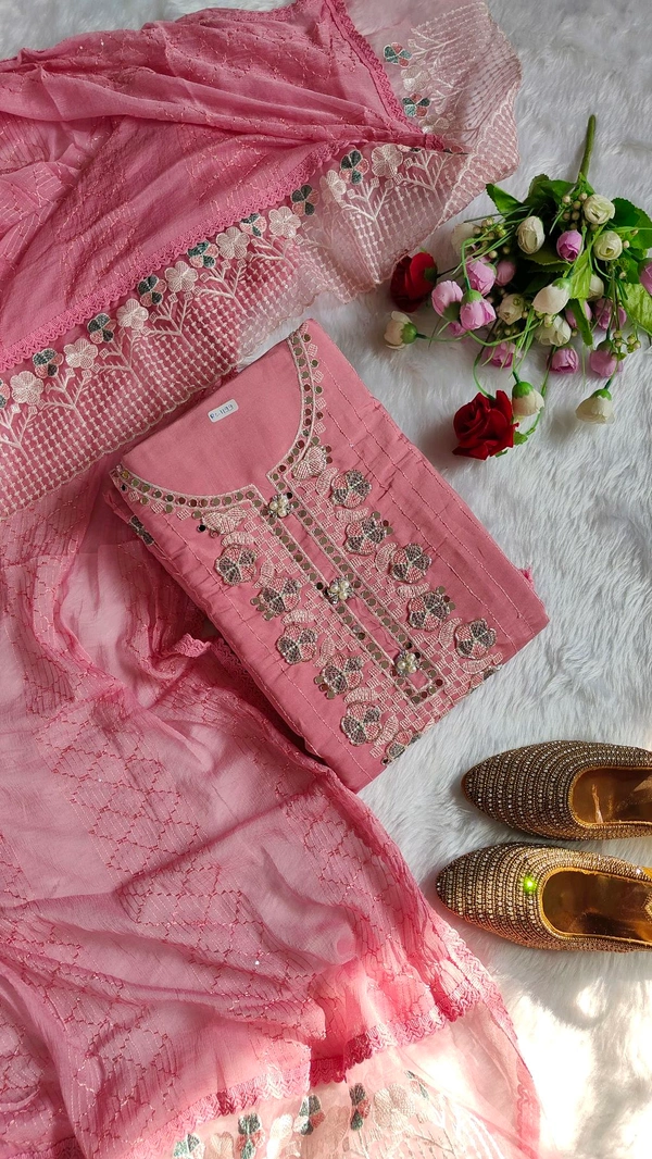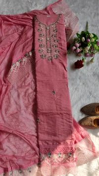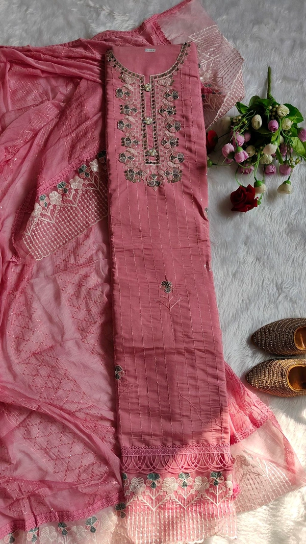 Dupatta -soft silk dupatta one side net embroidery work