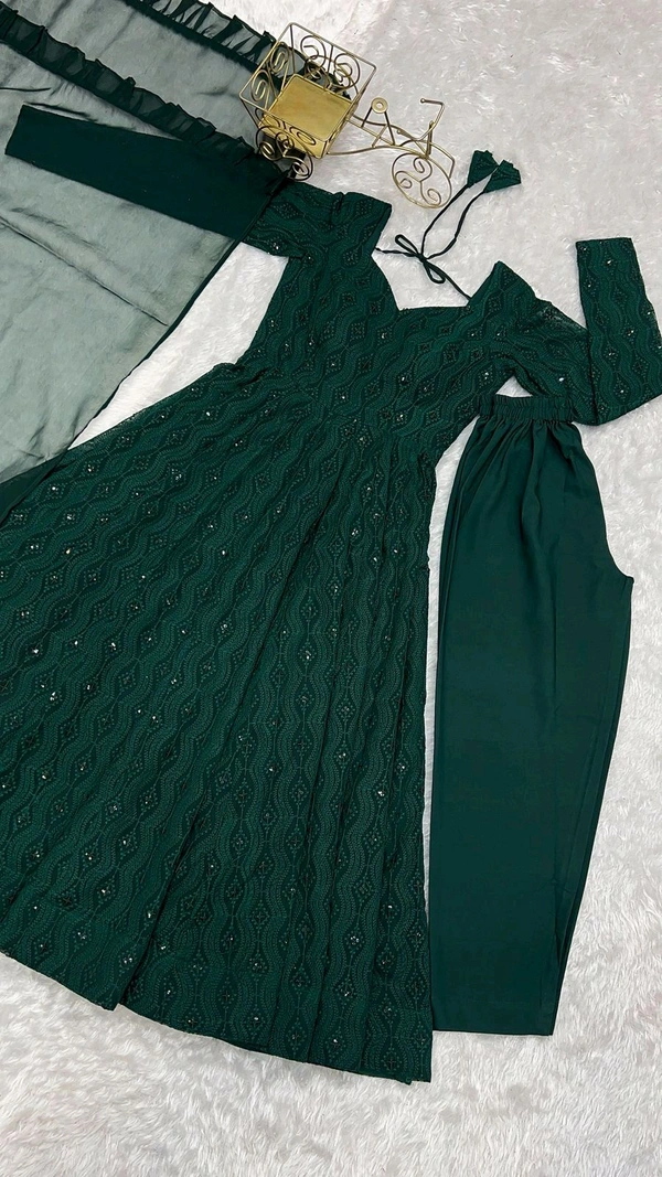 *ANARKALI FABRIC*:👗 HEAVY PURE SOFT FOX GEORGETTE LUKHNOWI SEQUENCE WORK