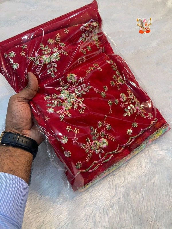 Georgette Saree With Georgette Multi Emrodiry Work Blouse With Rainbow Lace