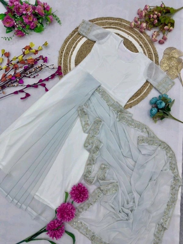 *🧲One More Super Hit Georgette Embroidery Gown Saree Design Launch*