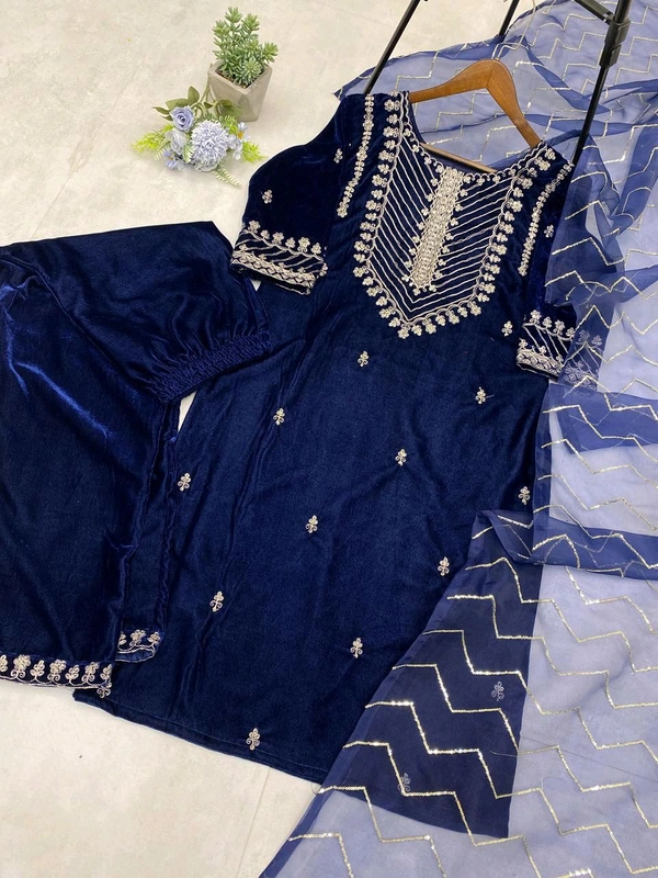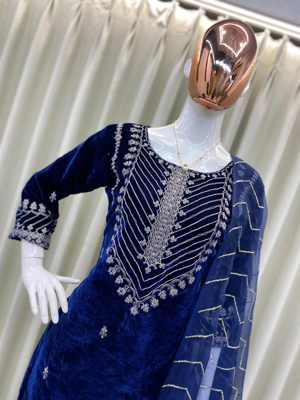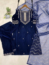 *ADORABLE HEAVY VELVET SEQUENCE EMBROIDERY WORK SUIT WITH PANT AND DUPATTA*