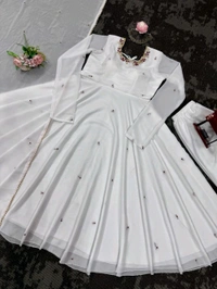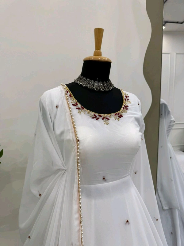 Looking for this same colour beautiful Designer Anarkali on Faux Georgette With Hand work and Pent on Crep febric and Dupatta on also Faux Georgette febri With hand work & Facy Lace.