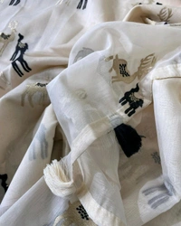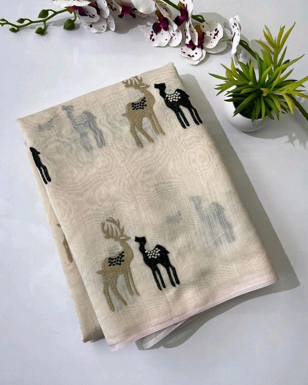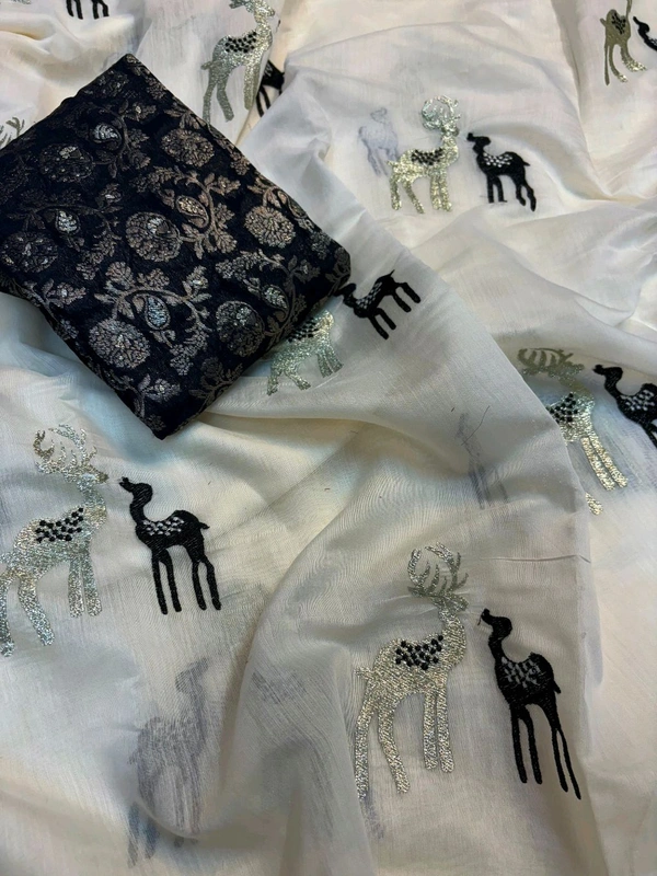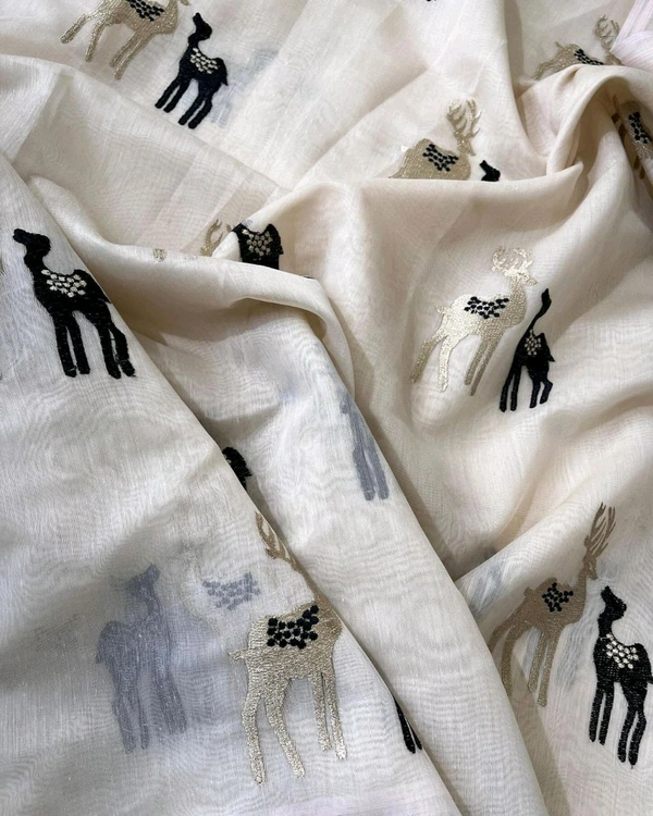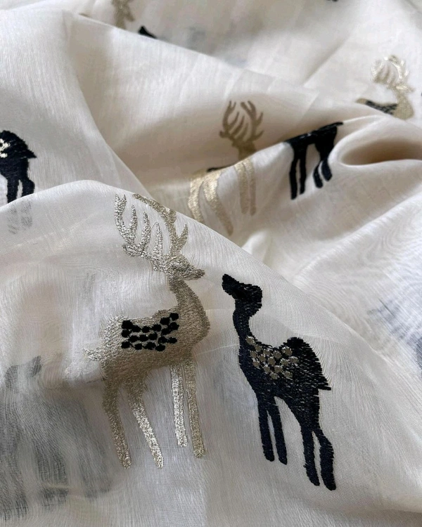Premium chanderi saree Tissue saree with *black Thread embroidery figure of Deer 🦌
