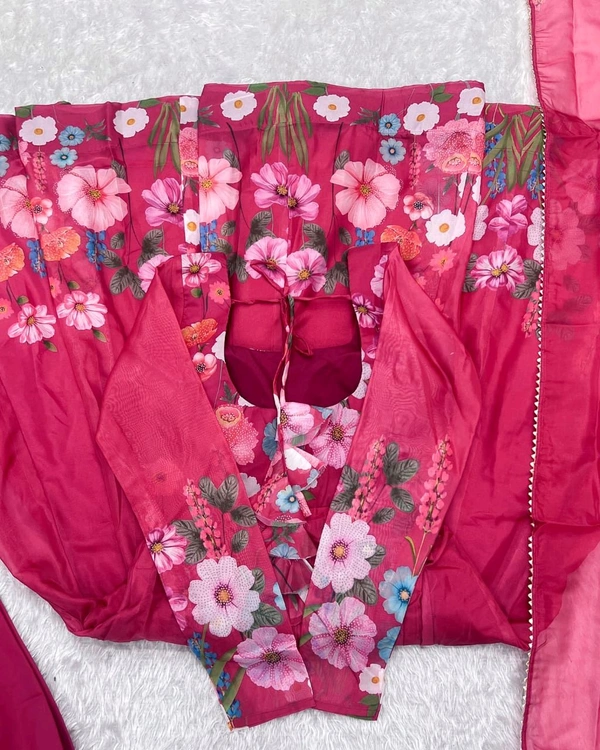 *Pure Soft Organja Silk Fabric Fully Flair Kali Pattern And Canvas Patta With Duppta Set ,pent Ready To Wear*