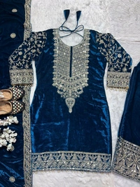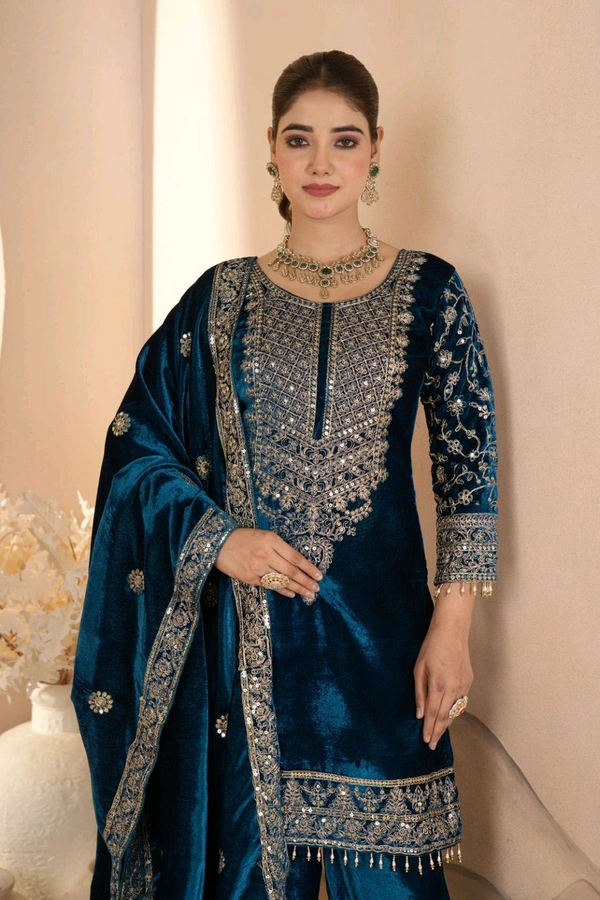 ๐*Suit Fabric* :Pure Heavy Viscose Velvet With *Heavy Embroidery Coding Sequence Work* With Full Embroidery Sleeve