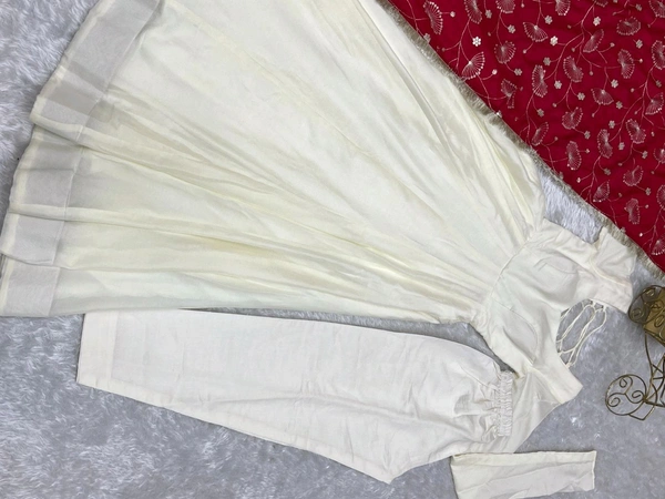 Pure Soft Vichitra Silk Fabric Fully Flair Kali Pattern And Canvas Patta With Duppta Set,pent Ready To Wear*
