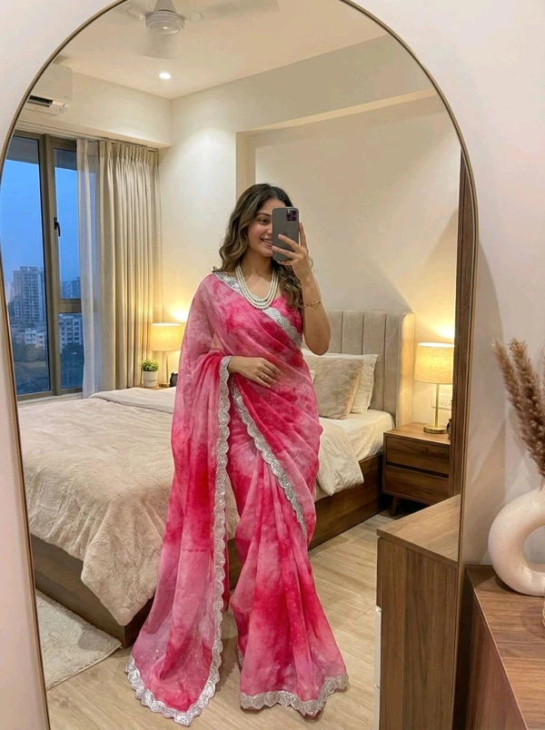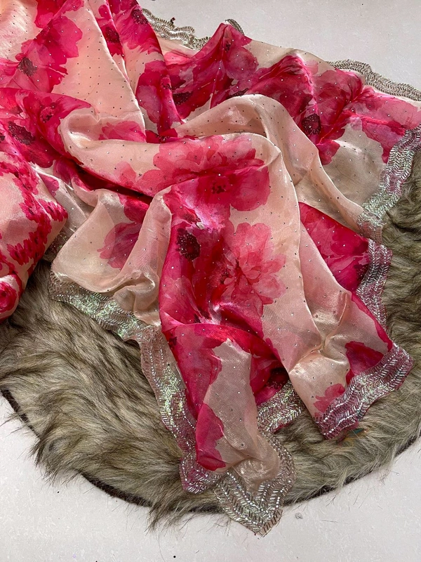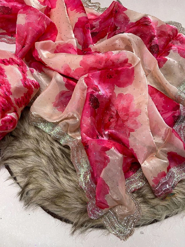 Pure soft zimmy choo silk saree with beautiful prism prints nd heavy jharkhand in all over saree with jharkhand lace border..
