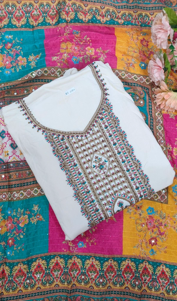 Pure Viscose Reyon Pattern With Fancy Embroidery with Swarovski Diamond Work (Cut: 2.50 Mtr Approx)