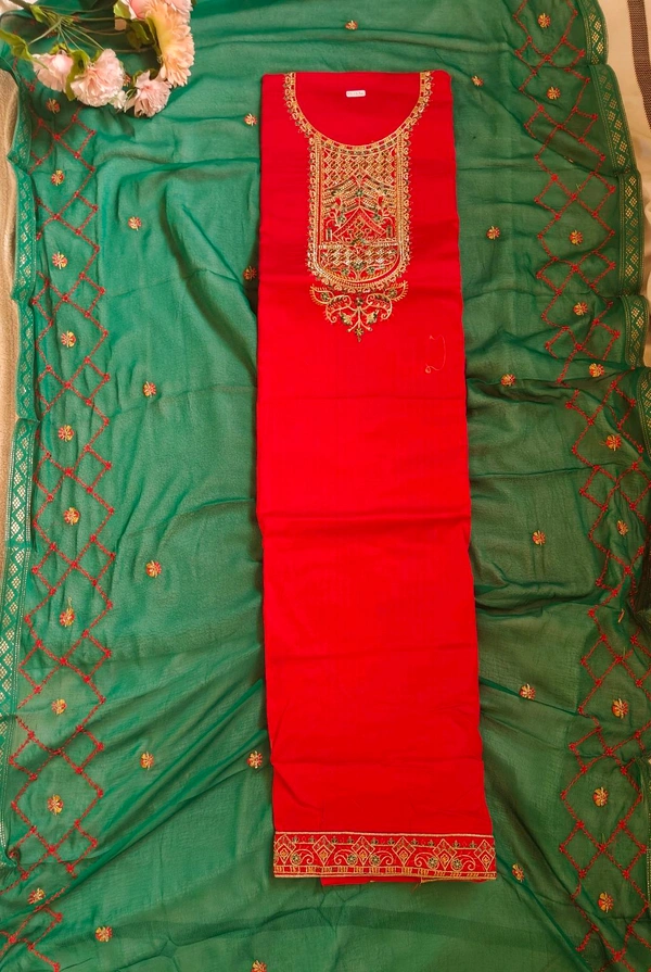 Pure Zam Cotton With Fancy Embroidery With Zarkan Work Suit