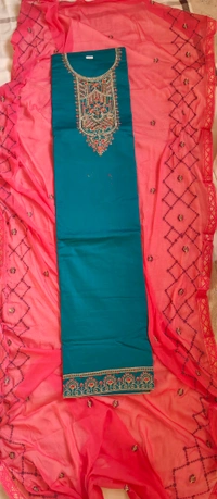 Pure Zam Cotton With Fancy Embroidery With Zarkan Work Suit