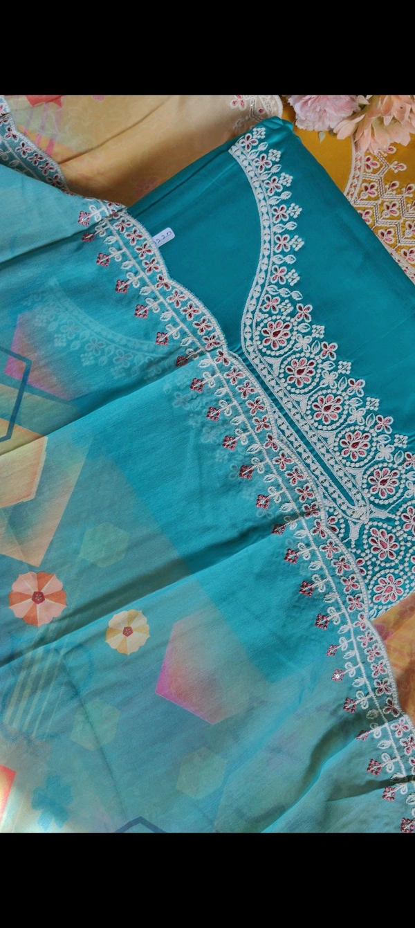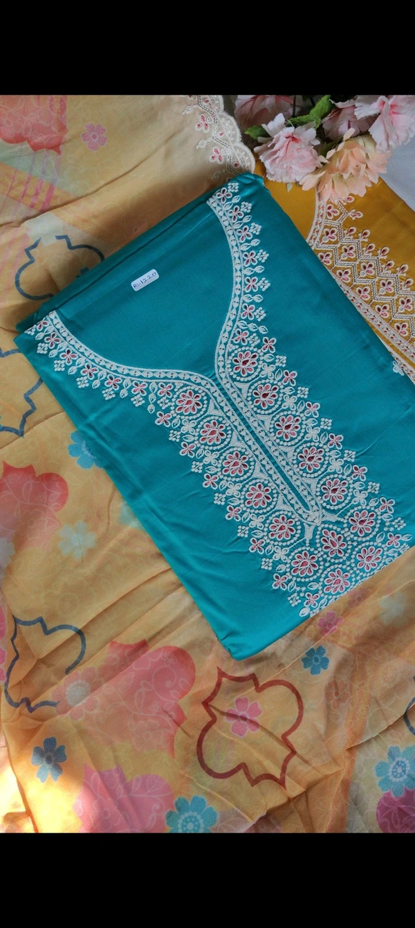ure Zam Cotton With Fancy Luckhnawi Thread Embroidery With Swarovski Diamond Work (Cut: 2.50 Mtr Approx)