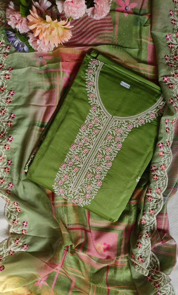 Pure Zam Cotton With Fancy Luckhnawi Thread Embroidery With Swarovski Diamond Work (Cut: 2.50 Mtr Approx)