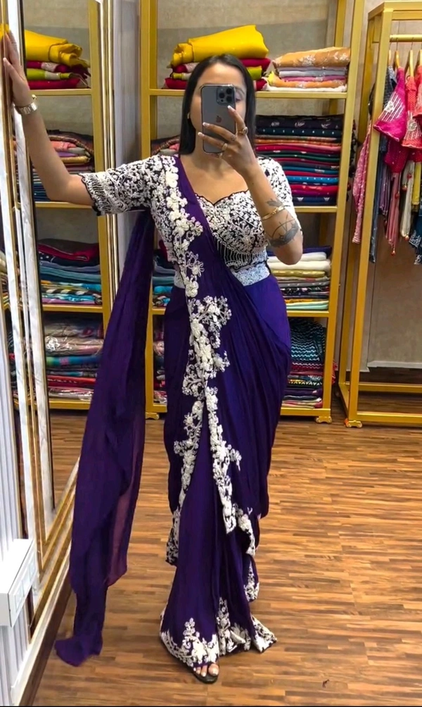 *New Super Trending Embroidery cording work ready to wear saree with Embroidery Blouse*