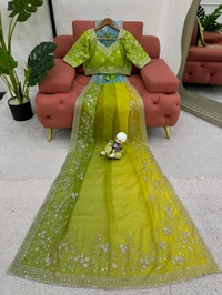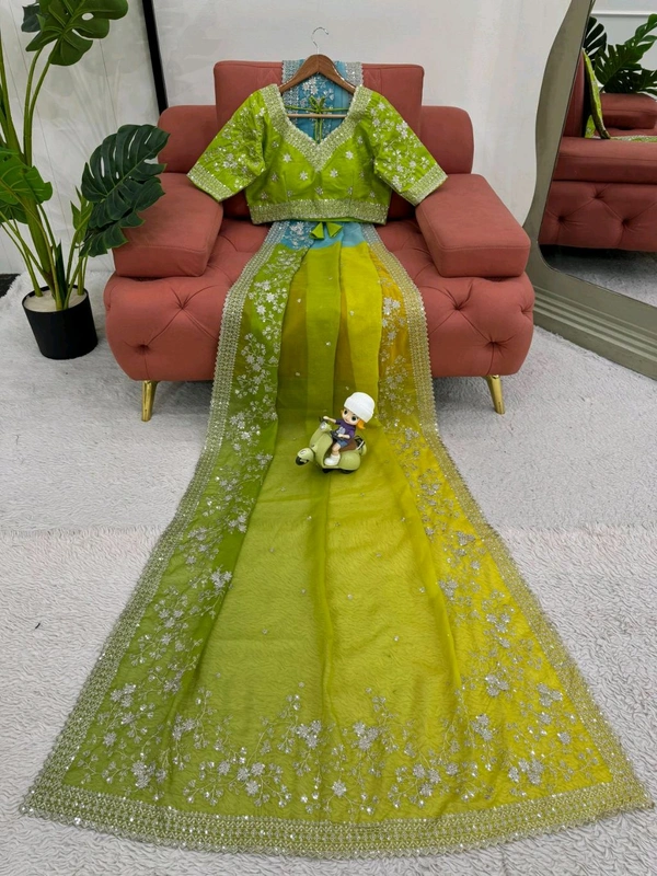 Looking some one for this same colour beautiful Designer Saree on Tibby silk Febric with Thred & Sequnce work with Digital Print and Blouse on Mono Benglori Silk Febric With Thred & Sequnce work.
